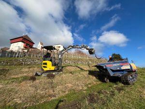 Bild 3: Mit einem Bagger werden die alten Reben im unteren Teil des Rebbergs entfernt.