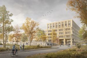 Auch in konstruktiver Hinsicht überzeugt das Projekt. Beim Trakt B wird – abgesehen vom Untergeschoss – der Bestand rückgebaut und das Gebäude mittels Holzrippendecke sechsgeschossig aufgestockt. Der Freiraum berücksichtigt die Auswirkungen der Klimaerhitzung: Die bestehende Treppenanlage wird durch zusätzliche Bepflanzung beschattet, und der Waldrand wird durch neue Aufenthaltsbereiche und eine lockere Baumbepflanzung aufgewertet.