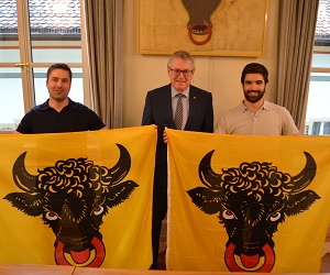 Einige Wochen nach ihrer Rückkehr aus Peking hat Landammann Urban Camenzind dafür gesorgt, dass die beiden je eine Urnerfahne erhielten. «Dies ein kleiner Dank für die gute Idee, mit der Simon Jauch und Thomas Gisler das Urner Wappen auf sympathische Weise in die Welt hinaustrugen», erklärte der Landammann bei der Übergabe der beiden Fahnen, die sinnigerweise im Bannersaal des Rathauses stattfand. Die beiden Olympia-Helfer zogen ihrerseits ein positives Fazit des Einsatzes: «Es war zwar streng, aber wir haben viele schöne Erlebnisse gehabt. Dass die Aktion mit der Urnerfahne ein dermassen grosses Echo auslösen würde, haben wir nicht erwartet. Doch die Echos auf die Urnerfahne waren durchwegs positiv». Simon Jauch und Thomas Gisler liessen jedenfalls durchblicken, dass sie mit den neuen Fahnen schon bald an weiteren internationalen Grossanlässen auftauchen würden.
